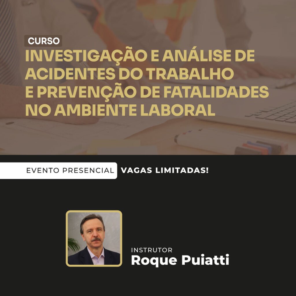 21 e 22 de Outubro – Curso Investigação e Análise de Acidentes do Trabalho e Prevenção de Fatalidades no Ambiente Laboral – São Paulo/SP